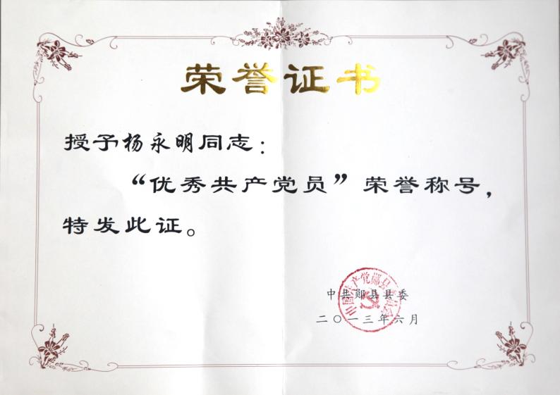 喜訊:“七一”建黨前夕,公司黨支部書(shū)記、總經(jīng)理?xiàng)钣烂魍颈恢泄侧y縣縣委授予“優(yōu)秀共產(chǎn)黨員”榮譽(yù)稱(chēng)號(hào)