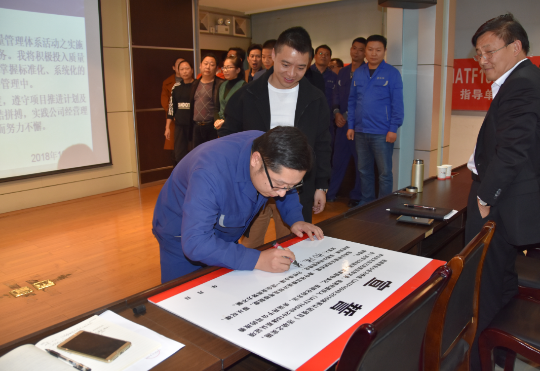 會上,質量管理體系推進小組成員進行了集體宣誓并現(xiàn)場簽名,充分展示了開展《質量管理體系提升》項目工作的決心。相信在公司上下一心、積極努力下,湖北佳恒科技股份有限公司一定能真正實現(xiàn)質量管理體系提升,將IATF16949:2016質量管理體系在企業(yè)內(nèi)部有效運行,為企業(yè)持續(xù)健康發(fā)展保駕護航!